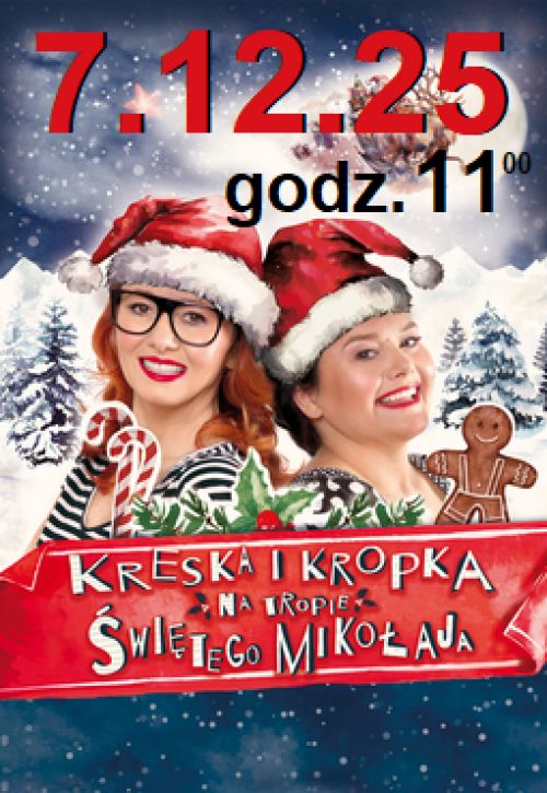 2025-12-07„Kreska i Kropka na tropie Świętego Mikołaja” to drugie spotkanie z szalonymi przyjaciółkami, które pokochały już rzesze małych Widzów. Tym razem dzięki magii teatru wyczarują niepowtarzalną świąteczną atmosferę. Za pomocą barw, muzyki oraz elementów interaktywnych bawią i uczą o przyjaźni, kreatywności, akceptacji i wybaczaniu. kup bilet |
